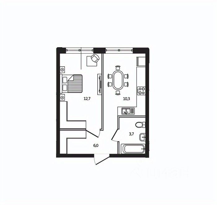 Жилая площадь12,7 м²
