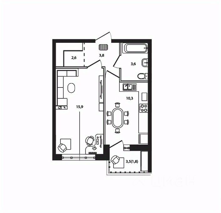 Жилая площадь15,9 м²