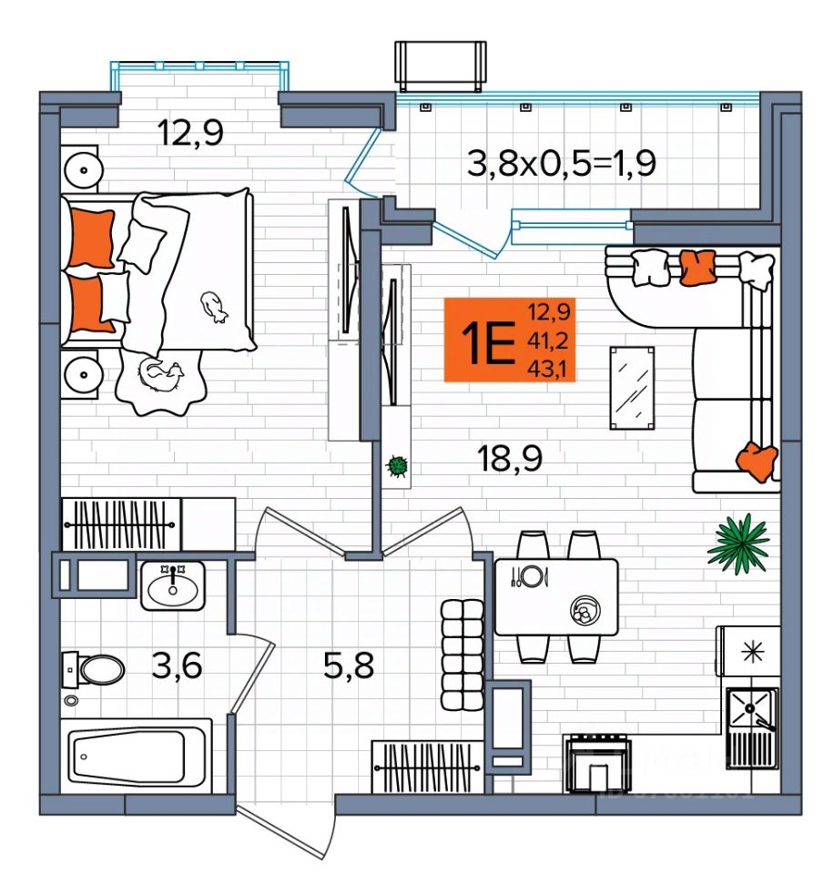 площадью 43.1 кв.м. на 15 этаже в 2-м подъезде - это оптимальный выбор для тех, кто ценит уют, качество и современный комфорт.
