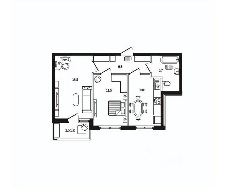 Площадь кухни10,6 м²