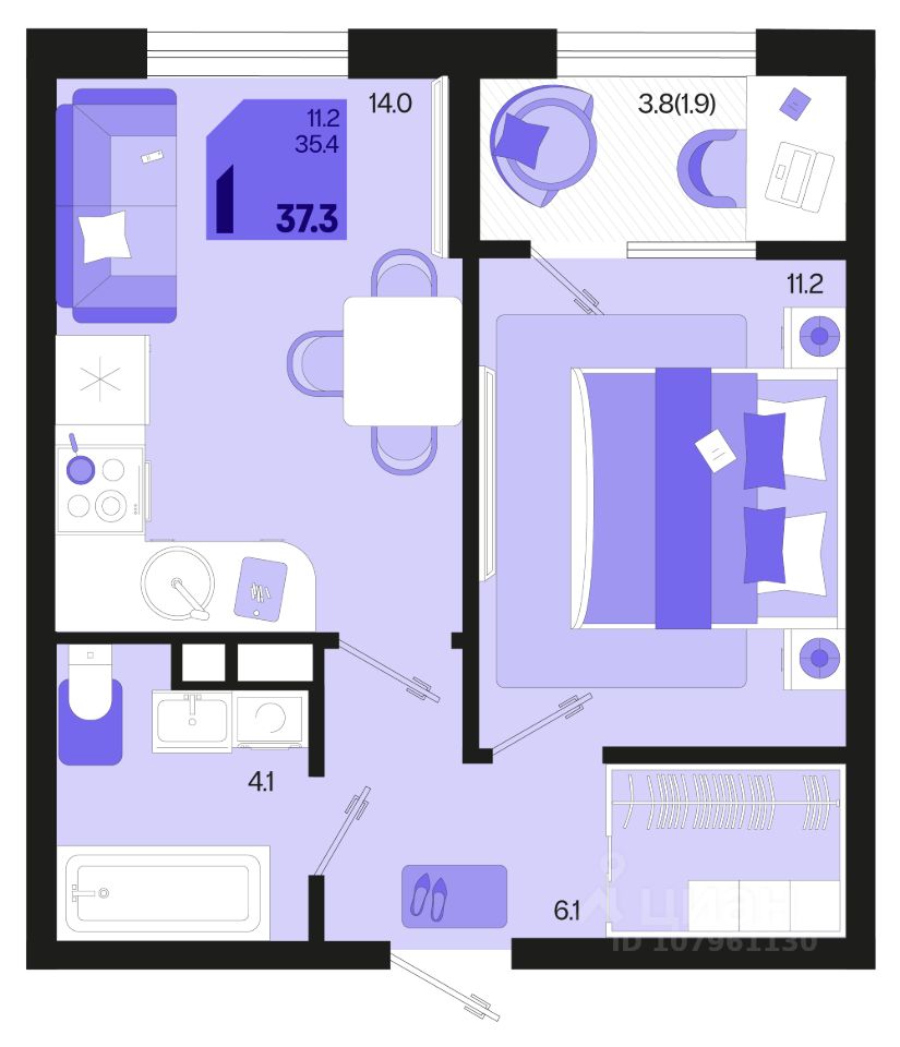 Общая площадь37,3 м²