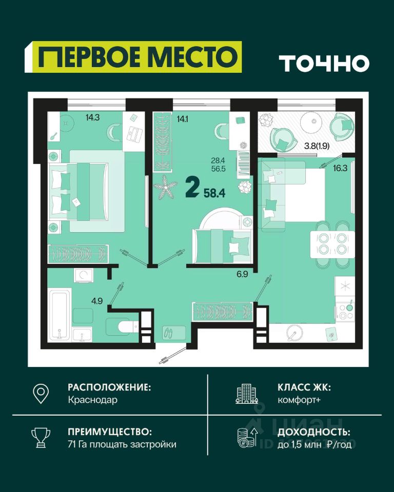 Жилой район "Первое место"- один из самых масштабных проектов в России. На территории 71 га 18 кварталов, 31 дом переменной этажности от 8 до 18 этажей, собственный парк 9 га, храмовый комплекс, пешеходный бульвар "Круг семьи", детские и спортивные площадки, мангальные зоны и различные локации для отдыха. В шаговой доступности действующие муниципальные образовательные учреждения: школа на 1 100 мест и детский сад на 250 мест. Помимо этого, в жилом районе "Первое место" построятся школа на 1700 мест с крытым 25-метровым бассейном и 5 детских садов на 1 490 мест. На первых этажах многоуровневых парковок "паркхабов" разместится более 61 тыс м2 коммерческих помещений. Жителям будут доступны собственный фитнес-центр, кафе, рестораны и магазины. В каждом подъезде предусмотрены дизайнерские холлы в стиле лобби отелей, консьерж-сервис, лапомойки, отдельные колясочные и велосипедные. Также в домах будут просторные кладовые помещения и комнаты для хранения почты с почтоматами для получения посылок из маркетплейсов.