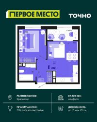 Жилой район "Первое место"- один из самых масштабных проектов в России. На территории 71 га 18 кварталов, 31 дом переменной этажности от 8 до 18 этажей, собственный парк 9 га, храмовый комплекс, пешеходный бульвар "Круг семьи", детские и спортивные площадки, мангальные зоны и различные локации для отдыха. В шаговой доступности действующие муниципальные образовательные учреждения: школа на 1 100 мест и детский сад на 250 мест. Помимо этого, в жилом районе "Первое место" построятся школа на 1700 мест с крытым 25-метровым бассейном и 5 детских садов на 1 490 мест. На первых этажах многоуровневых парковок "паркхабов" разместится более 61 тыс м2 коммерческих помещений. Жителям будут доступны собственный фитнес-центр, кафе, рестораны и магазины. В каждом подъезде предусмотрены дизайнерские холлы в стиле лобби отелей, консьерж-сервис, лапомойки, отдельные колясочные и велосипедные. Также в домах будут просторные кладовые помещения и комнаты для хранения почты с почтоматами для получения посылок из маркетплейсов.