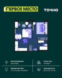 Жилой район "Первое место"- один из самых масштабных проектов в России. На территории 71 га 18 кварталов, 31 дом переменной этажности от 8 до 18 этажей, собственный парк 9 га, храмовый комплекс, пешеходный бульвар "Круг семьи", детские и спортивные площадки, мангальные зоны и различные локации для отдыха. В шаговой доступности действующие муниципальные образовательные учреждения: школа на 1 100 мест и детский сад на 250 мест. Помимо этого, в жилом районе "Первое место" построятся школа на 1700 мест с крытым 25-метровым бассейном и 5 детских садов на 1 490 мест. На первых этажах многоуровневых парковок "паркхабов" разместится более 61 тыс м2 коммерческих помещений. Жителям будут доступны собственный фитнес-центр, кафе, рестораны и магазины. В каждом подъезде предусмотрены дизайнерские холлы в стиле лобби отелей, консьерж-сервис, лапомойки, отдельные колясочные и велосипедные. Также в домах будут просторные кладовые помещения и комнаты для хранения почты с почтоматами для получения посылок из маркетплейсов.