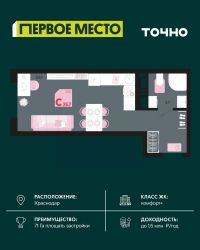 Жилой район "Первое место"- один из самых масштабных проектов в России. На территории 71 га 18 кварталов, 31 дом переменной этажности от 8 до 18 этажей, собственный парк 9 га, храмовый комплекс, пешеходный бульвар "Круг семьи", детские и спортивные площадки, мангальные зоны и различные локации для отдыха. В шаговой доступности действующие муниципальные образовательные учреждения: школа на 1 100 мест и детский сад на 250 мест. Помимо этого, в жилом районе "Первое место" построятся школа на 1700 мест с крытым 25-метровым бассейном и 5 детских садов на 1 490 мест. На первых этажах многоуровневых парковок "паркхабов" разместится более 61 тыс м2 коммерческих помещений. Жителям будут доступны собственный фитнес-центр, кафе, рестораны и магазины. В каждом подъезде предусмотрены дизайнерские холлы в стиле лобби отелей, консьерж-сервис, лапомойки, отдельные колясочные и велосипедные. Также в домах будут просторные кладовые помещения и комнаты для хранения почты с почтоматами для получения посылок из маркетплейсов.