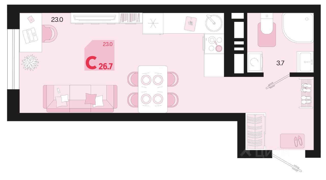 Общая площадь26,7 м²