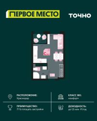 Жилой район "Первое место"- один из самых масштабных проектов в России. На территории 71 га 18 кварталов, 31 дом переменной этажности от 8 до 18 этажей, собственный парк 9 га, храмовый комплекс, пешеходный бульвар "Круг семьи", детские и спортивные площадки, мангальные зоны и различные локации для отдыха. В шаговой доступности действующие муниципальные образовательные учреждения: школа на 1 100 мест и детский сад на 250 мест. Помимо этого, в жилом районе "Первое место" построятся школа на 1700 мест с крытым 25-метровым бассейном и 5 детских садов на 1 490 мест. На первых этажах многоуровневых парковок "паркхабов" разместится более 61 тыс м2 коммерческих помещений. Жителям будут доступны собственный фитнес-центр, кафе, рестораны и магазины. В каждом подъезде предусмотрены дизайнерские холлы в стиле лобби отелей, консьерж-сервис, лапомойки, отдельные колясочные и велосипедные. Также в домах будут просторные кладовые помещения и комнаты для хранения почты с почтоматами для получения посылок из маркетплейсов.