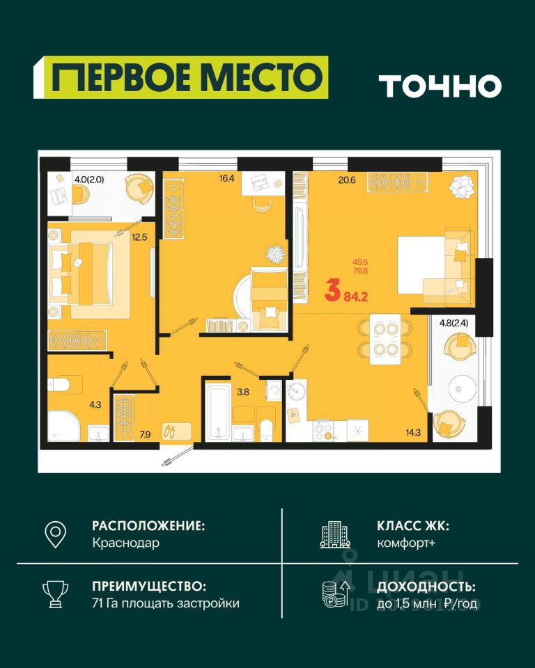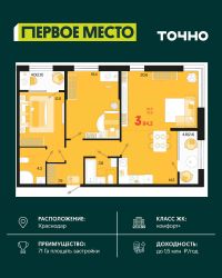 Жилой район "Первое место"- один из самых масштабных проектов в России. На территории 71 га 18 кварталов, 31 дом переменной этажности от 8 до 18 этажей, собственный парк 9 га, храмовый комплекс, пешеходный бульвар "Круг семьи", детские и спортивные площадки, мангальные зоны и различные локации для отдыха. В шаговой доступности действующие муниципальные образовательные учреждения: школа на 1 100 мест и детский сад на 250 мест. Помимо этого, в жилом районе "Первое место" построятся школа на 1700 мест с крытым 25-метровым бассейном и 5 детских садов на 1 490 мест. На первых этажах многоуровневых парковок "паркхабов" разместится более 61 тыс м2 коммерческих помещений. Жителям будут доступны собственный фитнес-центр, кафе, рестораны и магазины. В каждом подъезде предусмотрены дизайнерские холлы в стиле лобби отелей, консьерж-сервис, лапомойки, отдельные колясочные и велосипедные. Также в домах будут просторные кладовые помещения и комнаты для хранения почты с почтоматами для получения посылок из маркетплейсов.