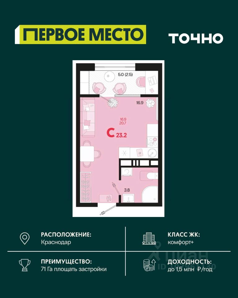 Жилой район "Первое место"- один из самых масштабных проектов в России. На территории 71 га 18 кварталов, 31 дом переменной этажности от 8 до 18 этажей, собственный парк 9 га, храмовый комплекс, пешеходный бульвар "Круг семьи", детские и спортивные площадки, мангальные зоны и различные локации для отдыха. В шаговой доступности действующие муниципальные образовательные учреждения: школа на 1 100 мест и детский сад на 250 мест. Помимо этого, в жилом районе "Первое место" построятся школа на 1700 мест с крытым 25-метровым бассейном и 5 детских садов на 1 490 мест. На первых этажах многоуровневых парковок "паркхабов" разместится более 61 тыс м2 коммерческих помещений. Жителям будут доступны собственный фитнес-центр, кафе, рестораны и магазины. В каждом подъезде предусмотрены дизайнерские холлы в стиле лобби отелей, консьерж-сервис, лапомойки, отдельные колясочные и велосипедные. Также в домах будут просторные кладовые помещения и комнаты для хранения почты с почтоматами для получения посылок из маркетплейсов.