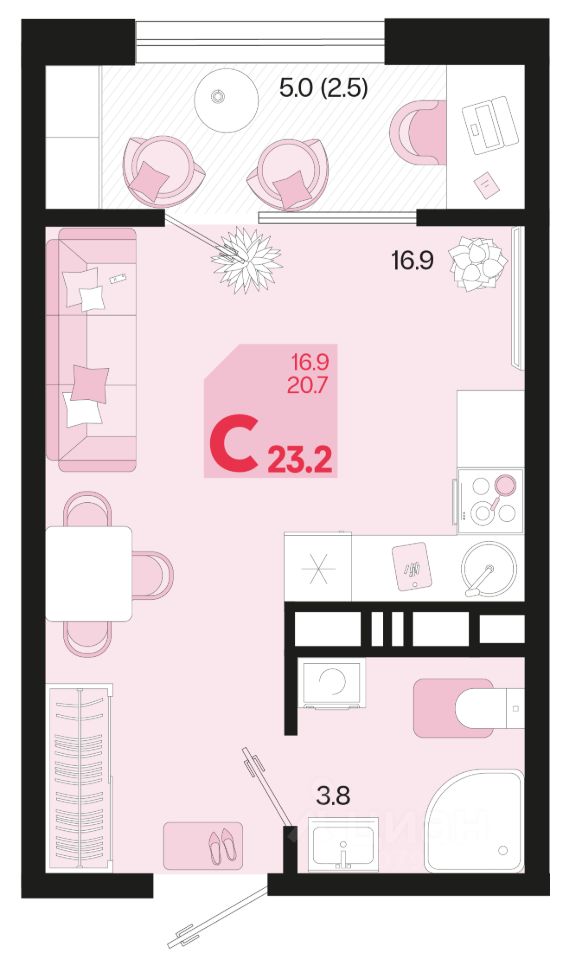 Общая площадь23,2 м²