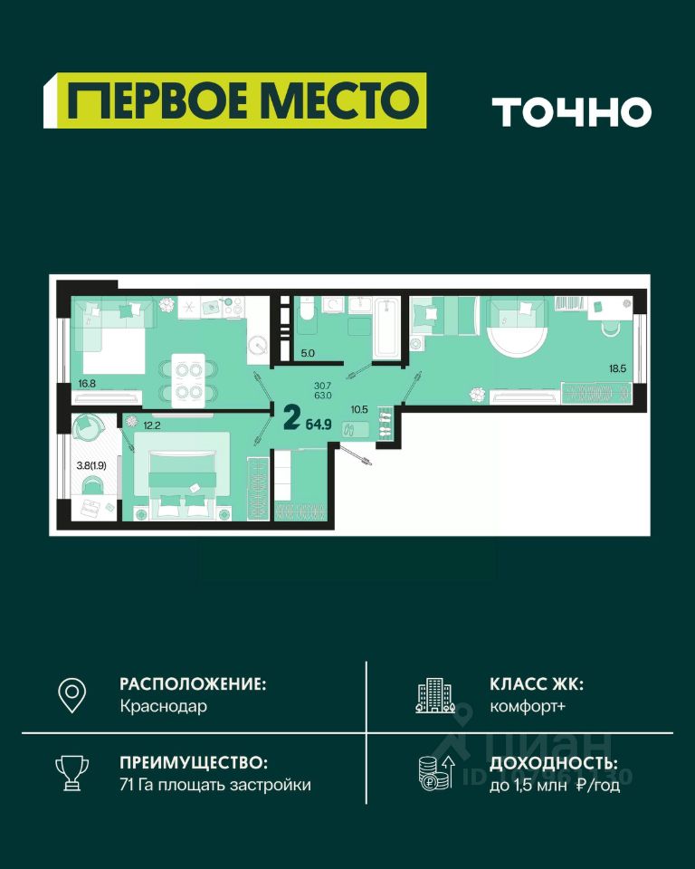 Жилой район "Первое место"- один из самых масштабных проектов в России. На территории 71 га 18 кварталов, 31 дом переменной этажности от 8 до 18 этажей, собственный парк 9 га, храмовый комплекс, пешеходный бульвар "Круг семьи", детские и спортивные площадки, мангальные зоны и различные локации для отдыха. В шаговой доступности действующие муниципальные образовательные учреждения: школа на 1 100 мест и детский сад на 250 мест. Помимо этого, в жилом районе "Первое место" построятся школа на 1700 мест с крытым 25-метровым бассейном и 5 детских садов на 1 490 мест. На первых этажах многоуровневых парковок "паркхабов" разместится более 61 тыс м2 коммерческих помещений. Жителям будут доступны собственный фитнес-центр, кафе, рестораны и магазины. В каждом подъезде предусмотрены дизайнерские холлы в стиле лобби отелей, консьерж-сервис, лапомойки, отдельные колясочные и велосипедные. Также в домах будут просторные кладовые помещения и комнаты для хранения почты с почтоматами для получения посылок из маркетплейсов.