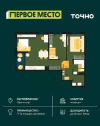 Жилой район "Первое место"- один из самых масштабных проектов в России. На территории 71 га 18 кварталов, 31 дом переменной этажности от 8 до 18 этажей, собственный парк 9 га, храмовый комплекс, пешеходный бульвар "Круг семьи", детские и спортивные площадки, мангальные зоны и различные локации для отдыха. В шаговой доступности действующие муниципальные образовательные учреждения: школа на 1 100 мест и детский сад на 250 мест. Помимо этого, в жилом районе "Первое место" построятся школа на 1700 мест с крытым 25-метровым бассейном и 5 детских садов на 1 490 мест. На первых этажах многоуровневых парковок "паркхабов" разместится более 61 тыс м2 коммерческих помещений. Жителям будут доступны собственный фитнес-центр, кафе, рестораны и магазины. В каждом подъезде предусмотрены дизайнерские холлы в стиле лобби отелей, консьерж-сервис, лапомойки, отдельные колясочные и велосипедные. Также в домах будут просторные кладовые помещения и комнаты для хранения почты с почтоматами для получения посылок из маркетплейсов.