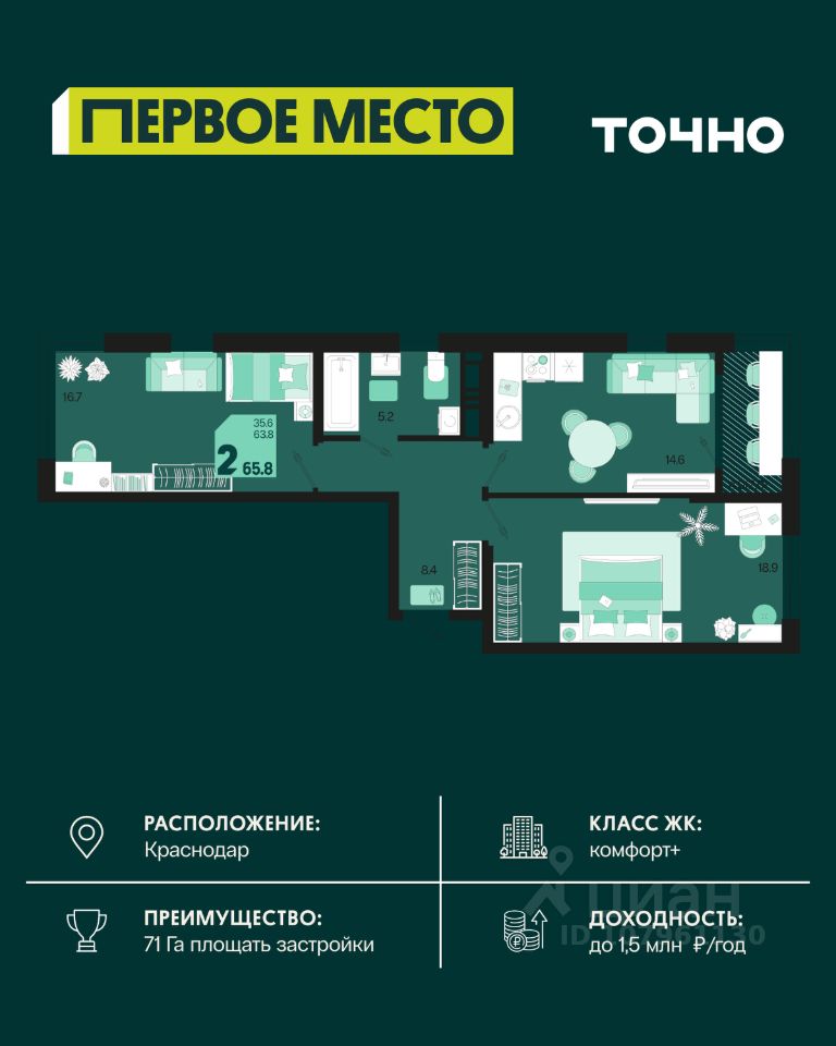 Жилой район "Первое место"- один из самых масштабных проектов в России. На территории 71 га 18 кварталов, 31 дом переменной этажности от 8 до 18 этажей, собственный парк 9 га, храмовый комплекс, пешеходный бульвар "Круг семьи", детские и спортивные площадки, мангальные зоны и различные локации для отдыха. В шаговой доступности действующие муниципальные образовательные учреждения: школа на 1 100 мест и детский сад на 250 мест. Помимо этого, в жилом районе "Первое место" построятся школа на 1700 мест с крытым 25-метровым бассейном и 5 детских садов на 1 490 мест. На первых этажах многоуровневых парковок "паркхабов" разместится более 61 тыс м2 коммерческих помещений. Жителям будут доступны собственный фитнес-центр, кафе, рестораны и магазины. В каждом подъезде предусмотрены дизайнерские холлы в стиле лобби отелей, консьерж-сервис, лапомойки, отдельные колясочные и велосипедные. Также в домах будут просторные кладовые помещения и комнаты для хранения почты с почтоматами для получения посылок из маркетплейсов.