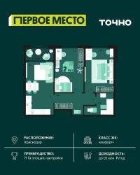 Жилой район "Первое место"- один из самых масштабных проектов в России. На территории 71 га 18 кварталов, 31 дом переменной этажности от 8 до 18 этажей, собственный парк 9 га, храмовый комплекс, пешеходный бульвар "Круг семьи", детские и спортивные площадки, мангальные зоны и различные локации для отдыха. В шаговой доступности действующие муниципальные образовательные учреждения: школа на 1 100 мест и детский сад на 250 мест. Помимо этого, в жилом районе "Первое место" построятся школа на 1700 мест с крытым 25-метровым бассейном и 5 детских садов на 1 490 мест. На первых этажах многоуровневых парковок "паркхабов" разместится более 61 тыс м2 коммерческих помещений. Жителям будут доступны собственный фитнес-центр, кафе, рестораны и магазины. В каждом подъезде предусмотрены дизайнерские холлы в стиле лобби отелей, консьерж-сервис, лапомойки, отдельные колясочные и велосипедные. Также в домах будут просторные кладовые помещения и комнаты для хранения почты с почтоматами для получения посылок из маркетплейсов.