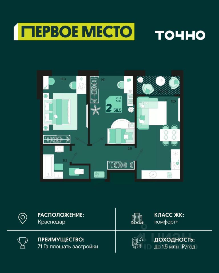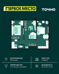 Жилой район "Первое место"- один из самых масштабных проектов в России. На территории 71 га 18 кварталов, 31 дом переменной этажности от 8 до 18 этажей, собственный парк 9 га, храмовый комплекс, пешеходный бульвар "Круг семьи", детские и спортивные площадки, мангальные зоны и различные локации для отдыха. В шаговой доступности действующие муниципальные образовательные учреждения: школа на 1 100 мест и детский сад на 250 мест. Помимо этого, в жилом районе "Первое место" построятся школа на 1700 мест с крытым 25-метровым бассейном и 5 детских садов на 1 490 мест. На первых этажах многоуровневых парковок "паркхабов" разместится более 61 тыс м2 коммерческих помещений. Жителям будут доступны собственный фитнес-центр, кафе, рестораны и магазины. В каждом подъезде предусмотрены дизайнерские холлы в стиле лобби отелей, консьерж-сервис, лапомойки, отдельные колясочные и велосипедные. Также в домах будут просторные кладовые помещения и комнаты для хранения почты с почтоматами для получения посылок из маркетплейсов.
