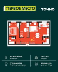 Жилой район "Первое место"- один из самых масштабных проектов в России. На территории 71 га 18 кварталов, 31 дом переменной этажности от 8 до 18 этажей, собственный парк 9 га, храмовый комплекс, пешеходный бульвар "Круг семьи", детские и спортивные площадки, мангальные зоны и различные локации для отдыха. В шаговой доступности действующие муниципальные образовательные учреждения: школа на 1 100 мест и детский сад на 250 мест. Помимо этого, в жилом районе "Первое место" построятся школа на 1700 мест с крытым 25-метровым бассейном и 5 детских садов на 1 490 мест. На первых этажах многоуровневых парковок "паркхабов" разместится более 61 тыс м2 коммерческих помещений. Жителям будут доступны собственный фитнес-центр, кафе, рестораны и магазины. В каждом подъезде предусмотрены дизайнерские холлы в стиле лобби отелей, консьерж-сервис, лапомойки, отдельные колясочные и велосипедные. Также в домах будут просторные кладовые помещения и комнаты для хранения почты с почтоматами для получения посылок из маркетплейсов.