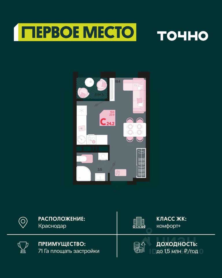 Жилой район "Первое место"- один из самых масштабных проектов в России. На территории 71 га 18 кварталов, 31 дом переменной этажности от 8 до 18 этажей, собственный парк 9 га, храмовый комплекс, пешеходный бульвар "Круг семьи", детские и спортивные площадки, мангальные зоны и различные локации для отдыха. В шаговой доступности действующие муниципальные образовательные учреждения: школа на 1 100 мест и детский сад на 250 мест. Помимо этого, в жилом районе "Первое место" построятся школа на 1700 мест с крытым 25-метровым бассейном и 5 детских садов на 1 490 мест. На первых этажах многоуровневых парковок "паркхабов" разместится более 61 тыс м2 коммерческих помещений. Жителям будут доступны собственный фитнес-центр, кафе, рестораны и магазины. В каждом подъезде предусмотрены дизайнерские холлы в стиле лобби отелей, консьерж-сервис, лапомойки, отдельные колясочные и велосипедные. Также в домах будут просторные кладовые помещения и комнаты для хранения почты с почтоматами для получения посылок из маркетплейсов.