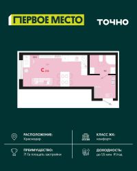 Жилой район "Первое место"- один из самых масштабных проектов в России. На территории 71 га 18 кварталов, 31 дом переменной этажности от 8 до 18 этажей, собственный парк 9 га, храмовый комплекс, пешеходный бульвар "Круг семьи", детские и спортивные площадки, мангальные зоны и различные локации для отдыха. В шаговой доступности действующие муниципальные образовательные учреждения: школа на 1 100 мест и детский сад на 250 мест. Помимо этого, в жилом районе "Первое место" построятся школа на 1700 мест с крытым 25-метровым бассейном и 5 детских садов на 1 490 мест. На первых этажах многоуровневых парковок "паркхабов" разместится более 61 тыс м2 коммерческих помещений. Жителям будут доступны собственный фитнес-центр, кафе, рестораны и магазины. В каждом подъезде предусмотрены дизайнерские холлы в стиле лобби отелей, консьерж-сервис, лапомойки, отдельные колясочные и велосипедные. Также в домах будут просторные кладовые помещения и комнаты для хранения почты с почтоматами для получения посылок из маркетплейсов.