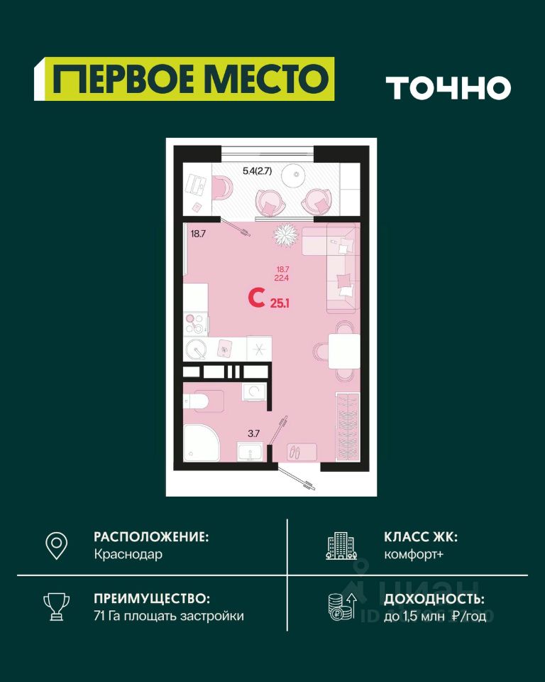 Жилой район "Первое место"- один из самых масштабных проектов в России. На территории 71 га 18 кварталов, 31 дом переменной этажности от 8 до 18 этажей, собственный парк 9 га, храмовый комплекс, пешеходный бульвар "Круг семьи", детские и спортивные площадки, мангальные зоны и различные локации для отдыха. В шаговой доступности действующие муниципальные образовательные учреждения: школа на 1 100 мест и детский сад на 250 мест. Помимо этого, в жилом районе "Первое место" построятся школа на 1700 мест с крытым 25-метровым бассейном и 5 детских садов на 1 490 мест. На первых этажах многоуровневых парковок "паркхабов" разместится более 61 тыс м2 коммерческих помещений. Жителям будут доступны собственный фитнес-центр, кафе, рестораны и магазины. В каждом подъезде предусмотрены дизайнерские холлы в стиле лобби отелей, консьерж-сервис, лапомойки, отдельные колясочные и велосипедные. Также в домах будут просторные кладовые помещения и комнаты для хранения почты с почтоматами для получения посылок из маркетплейсов.