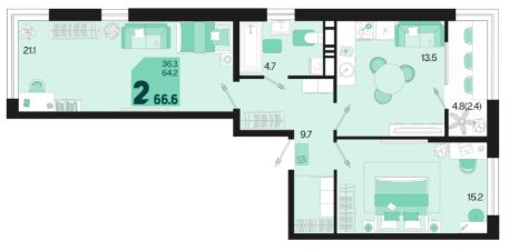 Общая площадь66,6 м²