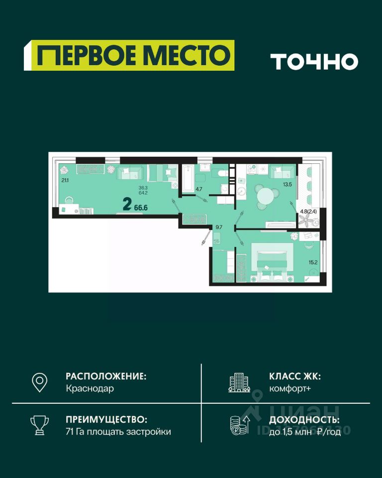 Общая площадь66,6 м²