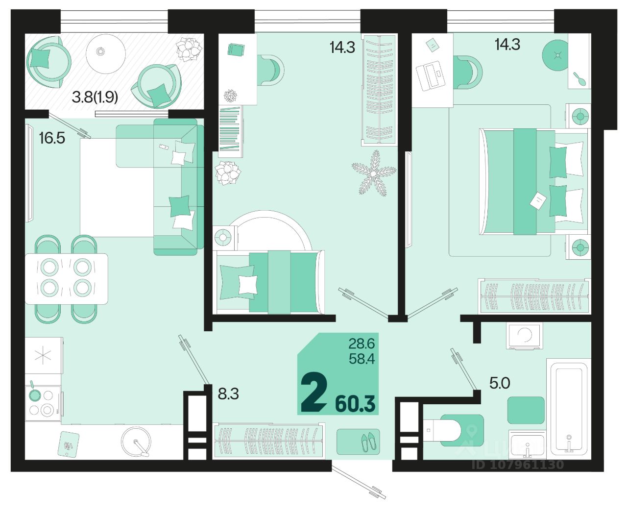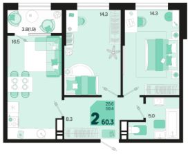 Общая площадь60,3 м²