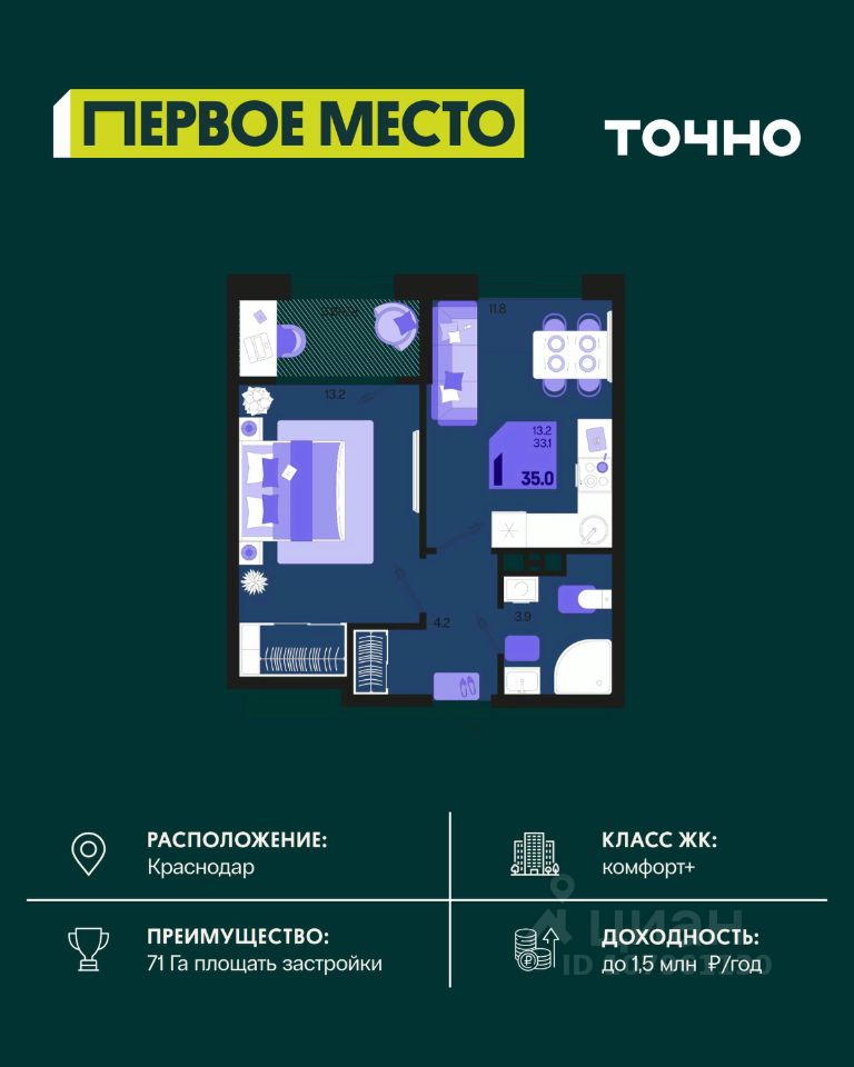 Жилой район "Первое место"- один из самых масштабных проектов в России. На территории 71 га 18 кварталов, 31 дом переменной этажности от 8 до 18 этажей, собственный парк 9 га, храмовый комплекс, пешеходный бульвар "Круг семьи", детские и спортивные площадки, мангальные зоны и различные локации для отдыха. В шаговой доступности действующие муниципальные образовательные учреждения: школа на 1 100 мест и детский сад на 250 мест. Помимо этого, в жилом районе "Первое место" построятся школа на 1700 мест с крытым 25-метровым бассейном и 5 детских садов на 1 490 мест. На первых этажах многоуровневых парковок "паркхабов" разместится более 61 тыс м2 коммерческих помещений. Жителям будут доступны собственный фитнес-центр, кафе, рестораны и магазины. В каждом подъезде предусмотрены дизайнерские холлы в стиле лобби отелей, консьерж-сервис, лапомойки, отдельные колясочные и велосипедные. Также в домах будут просторные кладовые помещения и комнаты для хранения почты с почтоматами для получения посылок из маркетплейсов.