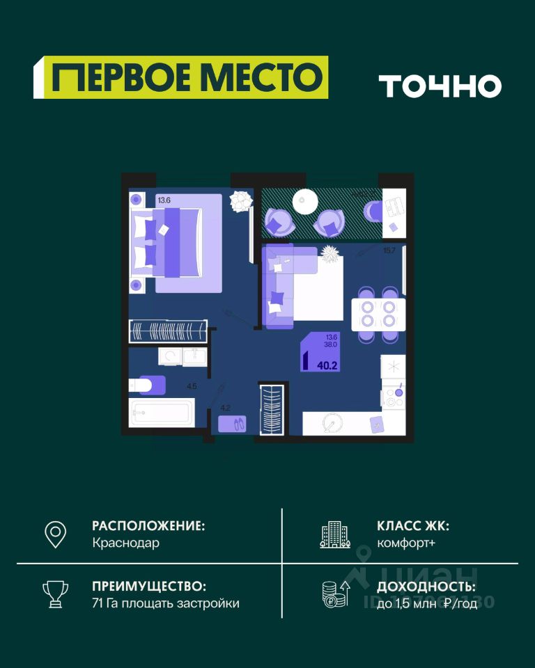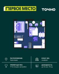 Жилой район "Первое место"- один из самых масштабных проектов в России. На территории 71 га 18 кварталов, 31 дом переменной этажности от 8 до 18 этажей, собственный парк 9 га, храмовый комплекс, пешеходный бульвар "Круг семьи", детские и спортивные площадки, мангальные зоны и различные локации для отдыха. В шаговой доступности действующие муниципальные образовательные учреждения: школа на 1 100 мест и детский сад на 250 мест. Помимо этого, в жилом районе "Первое место" построятся школа на 1700 мест с крытым 25-метровым бассейном и 5 детских садов на 1 490 мест. На первых этажах многоуровневых парковок "паркхабов" разместится более 61 тыс м2 коммерческих помещений. Жителям будут доступны собственный фитнес-центр, кафе, рестораны и магазины. В каждом подъезде предусмотрены дизайнерские холлы в стиле лобби отелей, консьерж-сервис, лапомойки, отдельные колясочные и велосипедные. Также в домах будут просторные кладовые помещения и комнаты для хранения почты с почтоматами для получения посылок из маркетплейсов.