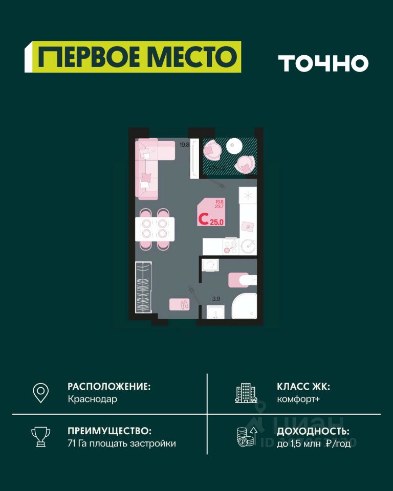 Жилой район "Первое место"- один из самых масштабных проектов в России. На территории 71 га 18 кварталов, 31 дом переменной этажности от 8 до 18 этажей, собственный парк 9 га, храмовый комплекс, пешеходный бульвар "Круг семьи", детские и спортивные площадки, мангальные зоны и различные локации для отдыха. В шаговой доступности действующие муниципальные образовательные учреждения: школа на 1 100 мест и детский сад на 250 мест. Помимо этого, в жилом районе "Первое место" построятся школа на 1700 мест с крытым 25-метровым бассейном и 5 детских садов на 1 490 мест. На первых этажах многоуровневых парковок "паркхабов" разместится более 61 тыс м2 коммерческих помещений. Жителям будут доступны собственный фитнес-центр, кафе, рестораны и магазины. В каждом подъезде предусмотрены дизайнерские холлы в стиле лобби отелей, консьерж-сервис, лапомойки, отдельные колясочные и велосипедные. Также в домах будут просторные кладовые помещения и комнаты для хранения почты с почтоматами для получения посылок из маркетплейсов.