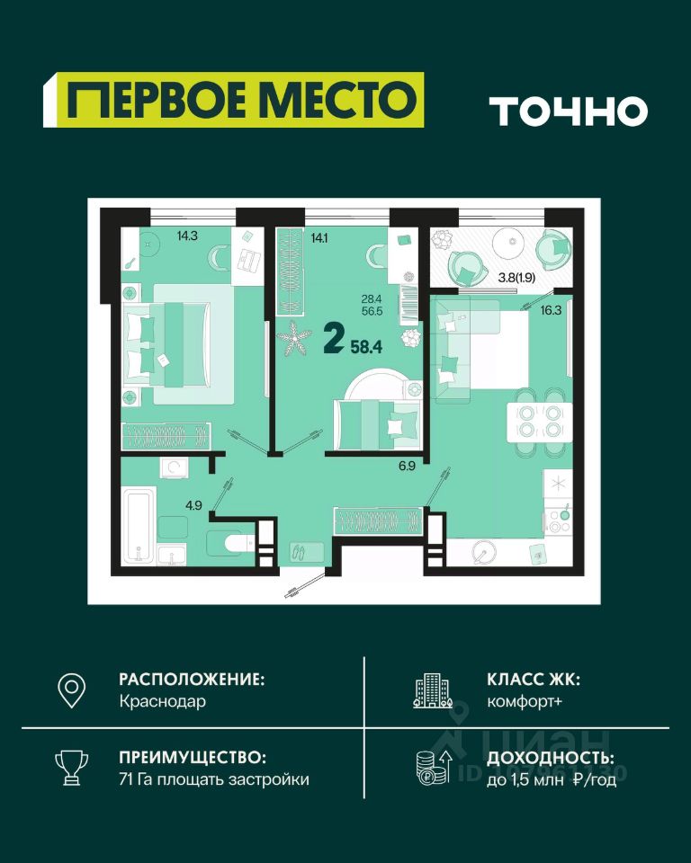 Жилой район "Первое место"- один из самых масштабных проектов в России. На территории 71 га 18 кварталов, 31 дом переменной этажности от 8 до 18 этажей, собственный парк 9 га, храмовый комплекс, пешеходный бульвар "Круг семьи", детские и спортивные площадки, мангальные зоны и различные локации для отдыха. В шаговой доступности действующие муниципальные образовательные учреждения: школа на 1 100 мест и детский сад на 250 мест. Помимо этого, в жилом районе "Первое место" построятся школа на 1700 мест с крытым 25-метровым бассейном и 5 детских садов на 1 490 мест. На первых этажах многоуровневых парковок "паркхабов" разместится более 61 тыс м2 коммерческих помещений. Жителям будут доступны собственный фитнес-центр, кафе, рестораны и магазины. В каждом подъезде предусмотрены дизайнерские холлы в стиле лобби отелей, консьерж-сервис, лапомойки, отдельные колясочные и велосипедные. Также в домах будут просторные кладовые помещения и комнаты для хранения почты с почтоматами для получения посылок из маркетплейсов.