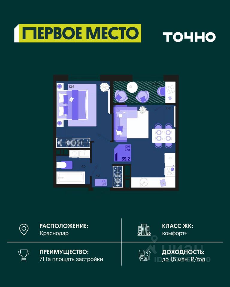 Жилой район "Первое место"- один из самых масштабных проектов в России. На территории 71 га 18 кварталов, 31 дом переменной этажности от 8 до 18 этажей, собственный парк 9 га, храмовый комплекс, пешеходный бульвар "Круг семьи", детские и спортивные площадки, мангальные зоны и различные локации для отдыха. В шаговой доступности действующие муниципальные образовательные учреждения: школа на 1 100 мест и детский сад на 250 мест. Помимо этого, в жилом районе "Первое место" построятся школа на 1700 мест с крытым 25-метровым бассейном и 5 детских садов на 1 490 мест. На первых этажах многоуровневых парковок "паркхабов" разместится более 61 тыс м2 коммерческих помещений. Жителям будут доступны собственный фитнес-центр, кафе, рестораны и магазины. В каждом подъезде предусмотрены дизайнерские холлы в стиле лобби отелей, консьерж-сервис, лапомойки, отдельные колясочные и велосипедные. Также в домах будут просторные кладовые помещения и комнаты для хранения почты с почтоматами для получения посылок из маркетплейсов.