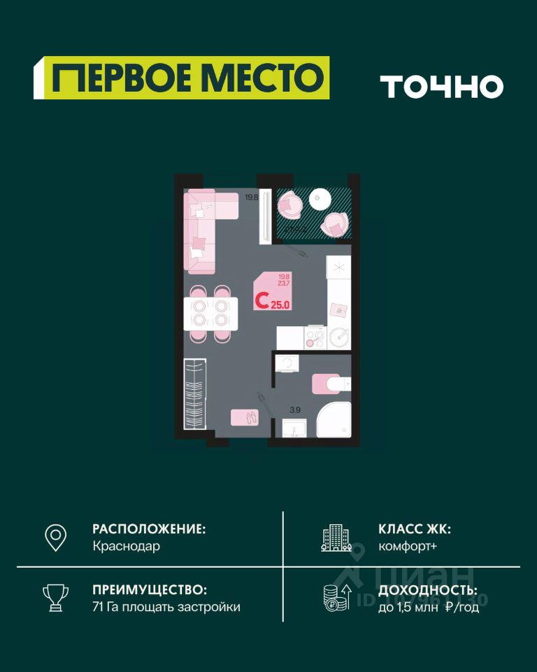Жилой район "Первое место"- один из самых масштабных проектов в России. На территории 71 га 18 кварталов, 31 дом переменной этажности от 8 до 18 этажей, собственный парк 9 га, храмовый комплекс, пешеходный бульвар "Круг семьи", детские и спортивные площадки, мангальные зоны и различные локации для отдыха. В шаговой доступности действующие муниципальные образовательные учреждения: школа на 1 100 мест и детский сад на 250 мест. Помимо этого, в жилом районе "Первое место" построятся школа на 1700 мест с крытым 25-метровым бассейном и 5 детских садов на 1 490 мест. На первых этажах многоуровневых парковок "паркхабов" разместится более 61 тыс м2 коммерческих помещений. Жителям будут доступны собственный фитнес-центр, кафе, рестораны и магазины. В каждом подъезде предусмотрены дизайнерские холлы в стиле лобби отелей, консьерж-сервис, лапомойки, отдельные колясочные и велосипедные. Также в домах будут просторные кладовые помещения и комнаты для хранения почты с почтоматами для получения посылок из маркетплейсов.