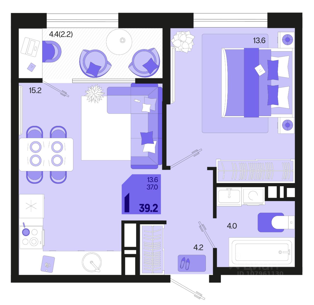 Общая площадь39,2 м²