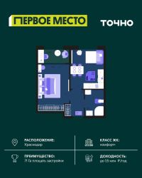 Жилой район "Первое место"- один из самых масштабных проектов в России. На территории 71 га 18 кварталов, 31 дом переменной этажности от 8 до 18 этажей, собственный парк 9 га, храмовый комплекс, пешеходный бульвар "Круг семьи", детские и спортивные площадки, мангальные зоны и различные локации для отдыха. В шаговой доступности действующие муниципальные образовательные учреждения: школа на 1 100 мест и детский сад на 250 мест. Помимо этого, в жилом районе "Первое место" построятся школа на 1700 мест с крытым 25-метровым бассейном и 5 детских садов на 1 490 мест. На первых этажах многоуровневых парковок "паркхабов" разместится более 61 тыс м2 коммерческих помещений. Жителям будут доступны собственный фитнес-центр, кафе, рестораны и магазины. В каждом подъезде предусмотрены дизайнерские холлы в стиле лобби отелей, консьерж-сервис, лапомойки, отдельные колясочные и велосипедные. Также в домах будут просторные кладовые помещения и комнаты для хранения почты с почтоматами для получения посылок из маркетплейсов.