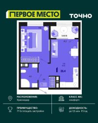 Жилой район "Первое место"- один из самых масштабных проектов в России. На территории 71 га 18 кварталов, 31 дом переменной этажности от 8 до 18 этажей, собственный парк 9 га, храмовый комплекс, пешеходный бульвар "Круг семьи", детские и спортивные площадки, мангальные зоны и различные локации для отдыха. В шаговой доступности действующие муниципальные образовательные учреждения: школа на 1 100 мест и детский сад на 250 мест. Помимо этого, в жилом районе "Первое место" построятся школа на 1700 мест с крытым 25-метровым бассейном и 5 детских садов на 1 490 мест. На первых этажах многоуровневых парковок "паркхабов" разместится более 61 тыс м2 коммерческих помещений. Жителям будут доступны собственный фитнес-центр, кафе, рестораны и магазины. В каждом подъезде предусмотрены дизайнерские холлы в стиле лобби отелей, консьерж-сервис, лапомойки, отдельные колясочные и велосипедные. Также в домах будут просторные кладовые помещения и комнаты для хранения почты с почтоматами для получения посылок из маркетплейсов.