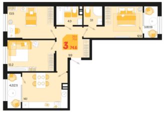 Общая площадь74,6 м²