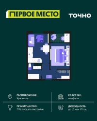 Жилой район "Первое место"- один из самых масштабных проектов в России. На территории 71 га 18 кварталов, 31 дом переменной этажности от 8 до 18 этажей, собственный парк 9 га, храмовый комплекс, пешеходный бульвар "Круг семьи", детские и спортивные площадки, мангальные зоны и различные локации для отдыха. В шаговой доступности действующие муниципальные образовательные учреждения: школа на 1 100 мест и детский сад на 250 мест. Помимо этого, в жилом районе "Первое место" построятся школа на 1700 мест с крытым 25-метровым бассейном и 5 детских садов на 1 490 мест. На первых этажах многоуровневых парковок "паркхабов" разместится более 61 тыс м2 коммерческих помещений. Жителям будут доступны собственный фитнес-центр, кафе, рестораны и магазины. В каждом подъезде предусмотрены дизайнерские холлы в стиле лобби отелей, консьерж-сервис, лапомойки, отдельные колясочные и велосипедные. Также в домах будут просторные кладовые помещения и комнаты для хранения почты с почтоматами для получения посылок из маркетплейсов.