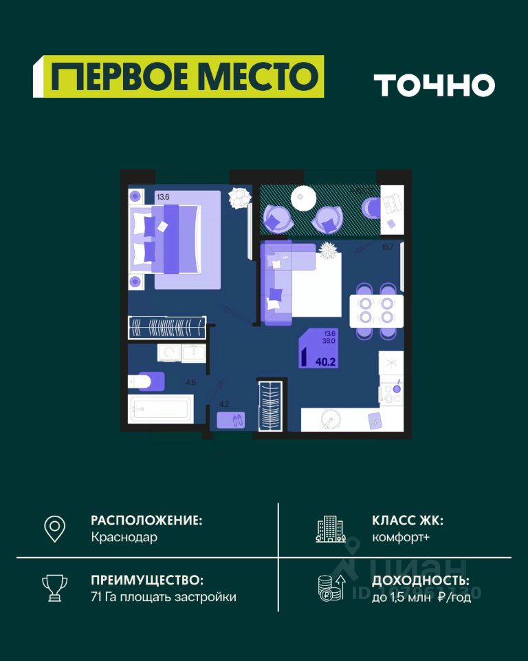 Жилой район "Первое место"- один из самых масштабных проектов в России. На территории 71 га 18 кварталов, 31 дом переменной этажности от 8 до 18 этажей, собственный парк 9 га, храмовый комплекс, пешеходный бульвар "Круг семьи", детские и спортивные площадки, мангальные зоны и различные локации для отдыха. В шаговой доступности действующие муниципальные образовательные учреждения: школа на 1 100 мест и детский сад на 250 мест. Помимо этого, в жилом районе "Первое место" построятся школа на 1700 мест с крытым 25-метровым бассейном и 5 детских садов на 1 490 мест. На первых этажах многоуровневых парковок "паркхабов" разместится более 61 тыс м2 коммерческих помещений. Жителям будут доступны собственный фитнес-центр, кафе, рестораны и магазины. В каждом подъезде предусмотрены дизайнерские холлы в стиле лобби отелей, консьерж-сервис, лапомойки, отдельные колясочные и велосипедные. Также в домах будут просторные кладовые помещения и комнаты для хранения почты с почтоматами для получения посылок из маркетплейсов.