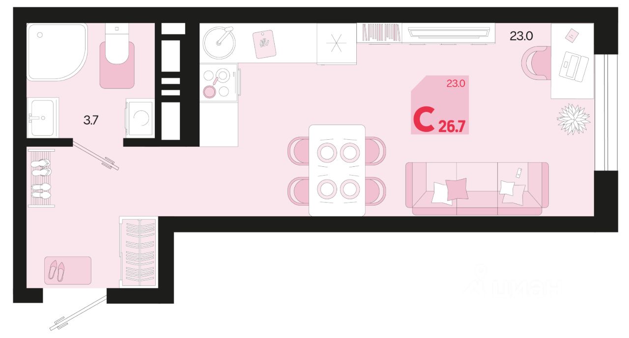 Общая площадь26,7 м²