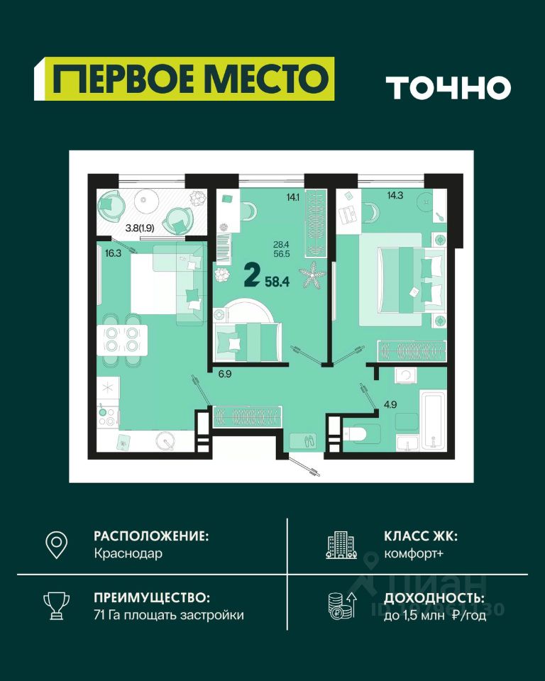 Жилой район "Первое место"- один из самых масштабных проектов в России. На территории 71 га 18 кварталов, 31 дом переменной этажности от 8 до 18 этажей, собственный парк 9 га, храмовый комплекс, пешеходный бульвар "Круг семьи", детские и спортивные площадки, мангальные зоны и различные локации для отдыха. В шаговой доступности действующие муниципальные образовательные учреждения: школа на 1 100 мест и детский сад на 250 мест. Помимо этого, в жилом районе "Первое место" построятся школа на 1700 мест с крытым 25-метровым бассейном и 5 детских садов на 1 490 мест. На первых этажах многоуровневых парковок "паркхабов" разместится более 61 тыс м2 коммерческих помещений. Жителям будут доступны собственный фитнес-центр, кафе, рестораны и магазины. В каждом подъезде предусмотрены дизайнерские холлы в стиле лобби отелей, консьерж-сервис, лапомойки, отдельные колясочные и велосипедные. Также в домах будут просторные кладовые помещения и комнаты для хранения почты с почтоматами для получения посылок из маркетплейсов.