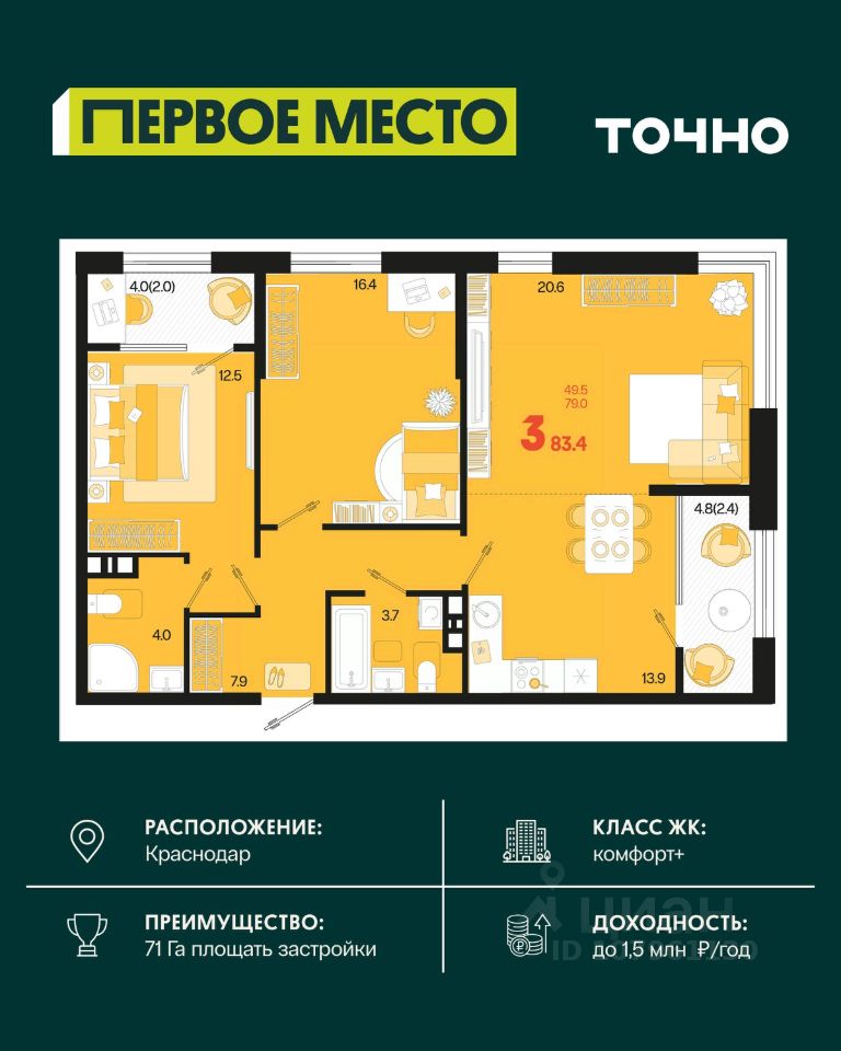 Жилой район "Первое место"- один из самых масштабных проектов в России. На территории 71 га 18 кварталов, 31 дом переменной этажности от 8 до 18 этажей, собственный парк 9 га, храмовый комплекс, пешеходный бульвар "Круг семьи", детские и спортивные площадки, мангальные зоны и различные локации для отдыха. В шаговой доступности действующие муниципальные образовательные учреждения: школа на 1 100 мест и детский сад на 250 мест. Помимо этого, в жилом районе "Первое место" построятся школа на 1700 мест с крытым 25-метровым бассейном и 5 детских садов на 1 490 мест. На первых этажах многоуровневых парковок "паркхабов" разместится более 61 тыс м2 коммерческих помещений. Жителям будут доступны собственный фитнес-центр, кафе, рестораны и магазины. В каждом подъезде предусмотрены дизайнерские холлы в стиле лобби отелей, консьерж-сервис, лапомойки, отдельные колясочные и велосипедные. Также в домах будут просторные кладовые помещения и комнаты для хранения почты с почтоматами для получения посылок из маркетплейсов.