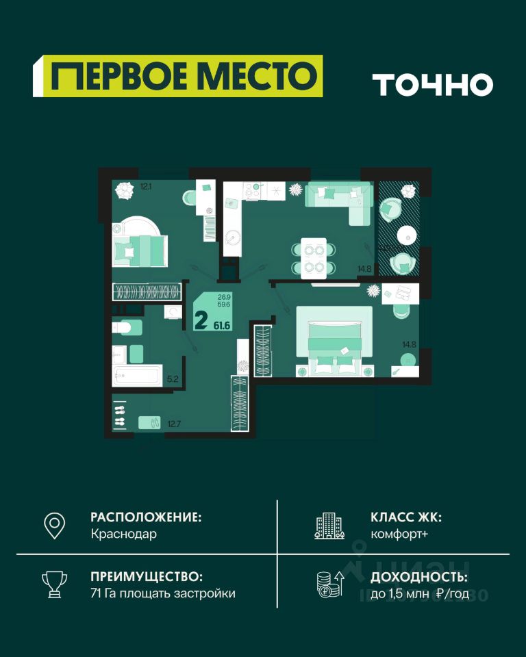Жилой район "Первое место"- один из самых масштабных проектов в России. На территории 71 га 18 кварталов, 31 дом переменной этажности от 8 до 18 этажей, собственный парк 9 га, храмовый комплекс, пешеходный бульвар "Круг семьи", детские и спортивные площадки, мангальные зоны и различные локации для отдыха. В шаговой доступности действующие муниципальные образовательные учреждения: школа на 1 100 мест и детский сад на 250 мест. Помимо этого, в жилом районе "Первое место" построятся школа на 1700 мест с крытым 25-метровым бассейном и 5 детских садов на 1 490 мест. На первых этажах многоуровневых парковок "паркхабов" разместится более 61 тыс м2 коммерческих помещений. Жителям будут доступны собственный фитнес-центр, кафе, рестораны и магазины. В каждом подъезде предусмотрены дизайнерские холлы в стиле лобби отелей, консьерж-сервис, лапомойки, отдельные колясочные и велосипедные. Также в домах будут просторные кладовые помещения и комнаты для хранения почты с почтоматами для получения посылок из маркетплейсов.