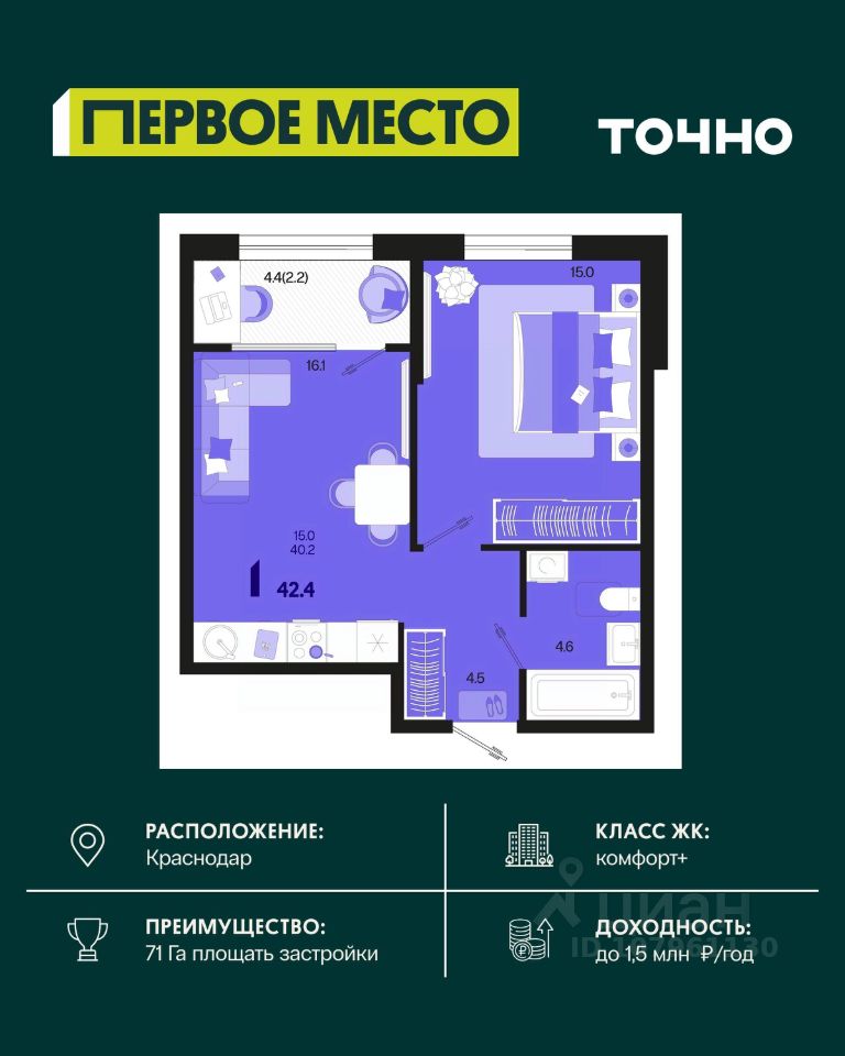 Жилой район "Первое место"- один из самых масштабных проектов в России. На территории 71 га 18 кварталов, 31 дом переменной этажности от 8 до 18 этажей, собственный парк 9 га, храмовый комплекс, пешеходный бульвар "Круг семьи", детские и спортивные площадки, мангальные зоны и различные локации для отдыха. В шаговой доступности действующие муниципальные образовательные учреждения: школа на 1 100 мест и детский сад на 250 мест. Помимо этого, в жилом районе "Первое место" построятся школа на 1700 мест с крытым 25-метровым бассейном и 5 детских садов на 1 490 мест. На первых этажах многоуровневых парковок "паркхабов" разместится более 61 тыс м2 коммерческих помещений. Жителям будут доступны собственный фитнес-центр, кафе, рестораны и магазины. В каждом подъезде предусмотрены дизайнерские холлы в стиле лобби отелей, консьерж-сервис, лапомойки, отдельные колясочные и велосипедные. Также в домах будут просторные кладовые помещения и комнаты для хранения почты с почтоматами для получения посылок из маркетплейсов.