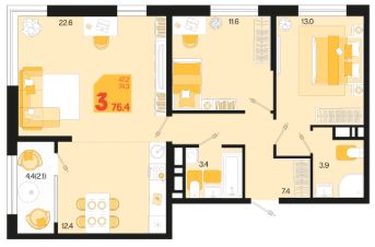 Общая площадь76,4 м²