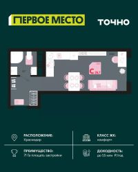 Жилой район "Первое место"- один из самых масштабных проектов в России. На территории 71 га 18 кварталов, 31 дом переменной этажности от 8 до 18 этажей, собственный парк 9 га, храмовый комплекс, пешеходный бульвар "Круг семьи", детские и спортивные площадки, мангальные зоны и различные локации для отдыха. В шаговой доступности действующие муниципальные образовательные учреждения: школа на 1 100 мест и детский сад на 250 мест. Помимо этого, в жилом районе "Первое место" построятся школа на 1700 мест с крытым 25-метровым бассейном и 5 детских садов на 1 490 мест. На первых этажах многоуровневых парковок "паркхабов" разместится более 61 тыс м2 коммерческих помещений. Жителям будут доступны собственный фитнес-центр, кафе, рестораны и магазины. В каждом подъезде предусмотрены дизайнерские холлы в стиле лобби отелей, консьерж-сервис, лапомойки, отдельные колясочные и велосипедные. Также в домах будут просторные кладовые помещения и комнаты для хранения почты с почтоматами для получения посылок из маркетплейсов.
