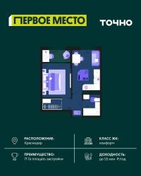 Жилой район "Первое место"- один из самых масштабных проектов в России. На территории 71 га 18 кварталов, 31 дом переменной этажности от 8 до 18 этажей, собственный парк 9 га, храмовый комплекс, пешеходный бульвар "Круг семьи", детские и спортивные площадки, мангальные зоны и различные локации для отдыха. В шаговой доступности действующие муниципальные образовательные учреждения: школа на 1 100 мест и детский сад на 250 мест. Помимо этого, в жилом районе "Первое место" построятся школа на 1700 мест с крытым 25-метровым бассейном и 5 детских садов на 1 490 мест. На первых этажах многоуровневых парковок "паркхабов" разместится более 61 тыс м2 коммерческих помещений. Жителям будут доступны собственный фитнес-центр, кафе, рестораны и магазины. В каждом подъезде предусмотрены дизайнерские холлы в стиле лобби отелей, консьерж-сервис, лапомойки, отдельные колясочные и велосипедные. Также в домах будут просторные кладовые помещения и комнаты для хранения почты с почтоматами для получения посылок из маркетплейсов.