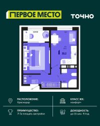 Жилой район "Первое место"- один из самых масштабных проектов в России. На территории 71 га 18 кварталов, 31 дом переменной этажности от 8 до 18 этажей, собственный парк 9 га, храмовый комплекс, пешеходный бульвар "Круг семьи", детские и спортивные площадки, мангальные зоны и различные локации для отдыха. В шаговой доступности действующие муниципальные образовательные учреждения: школа на 1 100 мест и детский сад на 250 мест. Помимо этого, в жилом районе "Первое место" построятся школа на 1700 мест с крытым 25-метровым бассейном и 5 детских садов на 1 490 мест. На первых этажах многоуровневых парковок "паркхабов" разместится более 61 тыс м2 коммерческих помещений. Жителям будут доступны собственный фитнес-центр, кафе, рестораны и магазины. В каждом подъезде предусмотрены дизайнерские холлы в стиле лобби отелей, консьерж-сервис, лапомойки, отдельные колясочные и велосипедные. Также в домах будут просторные кладовые помещения и комнаты для хранения почты с почтоматами для получения посылок из маркетплейсов.