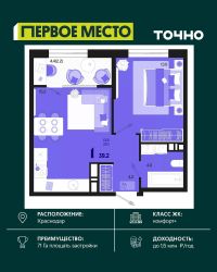 Жилой район "Первое место"- один из самых масштабных проектов в России. На территории 71 га 18 кварталов, 31 дом переменной этажности от 8 до 18 этажей, собственный парк 9 га, храмовый комплекс, пешеходный бульвар "Круг семьи", детские и спортивные площадки, мангальные зоны и различные локации для отдыха. В шаговой доступности действующие муниципальные образовательные учреждения: школа на 1 100 мест и детский сад на 250 мест. Помимо этого, в жилом районе "Первое место" построятся школа на 1700 мест с крытым 25-метровым бассейном и 5 детских садов на 1 490 мест. На первых этажах многоуровневых парковок "паркхабов" разместится более 61 тыс м2 коммерческих помещений. Жителям будут доступны собственный фитнес-центр, кафе, рестораны и магазины. В каждом подъезде предусмотрены дизайнерские холлы в стиле лобби отелей, консьерж-сервис, лапомойки, отдельные колясочные и велосипедные. Также в домах будут просторные кладовые помещения и комнаты для хранения почты с почтоматами для получения посылок из маркетплейсов.