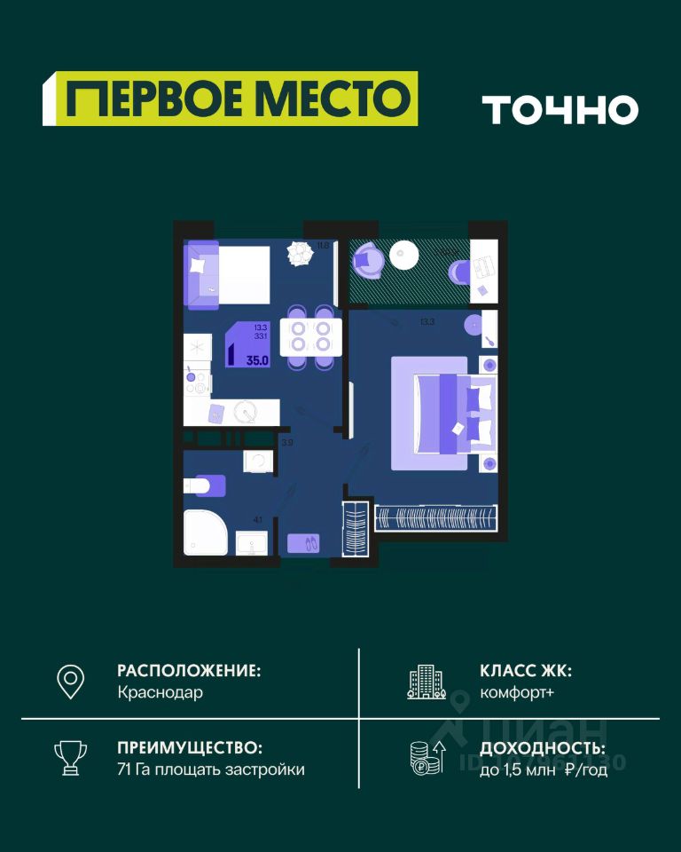 Жилой район "Первое место"- один из самых масштабных проектов в России. На территории 71 га 18 кварталов, 31 дом переменной этажности от 8 до 18 этажей, собственный парк 9 га, храмовый комплекс, пешеходный бульвар "Круг семьи", детские и спортивные площадки, мангальные зоны и различные локации для отдыха. В шаговой доступности действующие муниципальные образовательные учреждения: школа на 1 100 мест и детский сад на 250 мест. Помимо этого, в жилом районе "Первое место" построятся школа на 1700 мест с крытым 25-метровым бассейном и 5 детских садов на 1 490 мест. На первых этажах многоуровневых парковок "паркхабов" разместится более 61 тыс м2 коммерческих помещений. Жителям будут доступны собственный фитнес-центр, кафе, рестораны и магазины. В каждом подъезде предусмотрены дизайнерские холлы в стиле лобби отелей, консьерж-сервис, лапомойки, отдельные колясочные и велосипедные. Также в домах будут просторные кладовые помещения и комнаты для хранения почты с почтоматами для получения посылок из маркетплейсов.