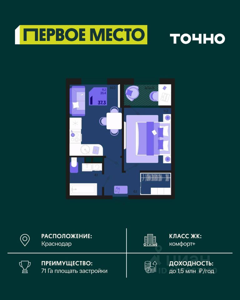 Жилой район "Первое место"- один из самых масштабных проектов в России. На территории 71 га 18 кварталов, 31 дом переменной этажности от 8 до 18 этажей, собственный парк 9 га, храмовый комплекс, пешеходный бульвар "Круг семьи", детские и спортивные площадки, мангальные зоны и различные локации для отдыха. В шаговой доступности действующие муниципальные образовательные учреждения: школа на 1 100 мест и детский сад на 250 мест. Помимо этого, в жилом районе "Первое место" построятся школа на 1700 мест с крытым 25-метровым бассейном и 5 детских садов на 1 490 мест. На первых этажах многоуровневых парковок "паркхабов" разместится более 61 тыс м2 коммерческих помещений. Жителям будут доступны собственный фитнес-центр, кафе, рестораны и магазины. В каждом подъезде предусмотрены дизайнерские холлы в стиле лобби отелей, консьерж-сервис, лапомойки, отдельные колясочные и велосипедные. Также в домах будут просторные кладовые помещения и комнаты для хранения почты с почтоматами для получения посылок из маркетплейсов.